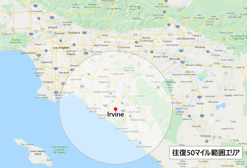 Answer 私のアーバインの自宅から往復50マイル以内は無料です。出張距離はGoogleマップで積算いたします。しかし往復50マイルを超える場合は、1マイルにつき58セント(米国IRS積算に基づく)頂きます。尚、撮影に当たって、他、駐車場代、バスや公共の交通手段が必要な場合は実費のご請求になりますので予めご了承下さい。